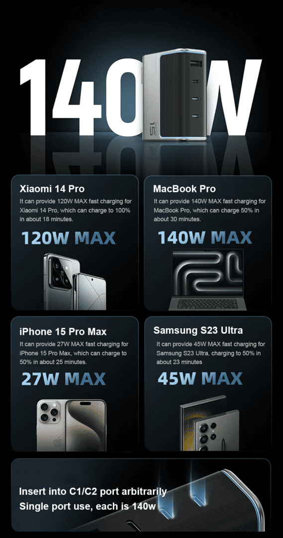 👉 Hãy sở hữu ngay CUKTECH AD1404U Bộ sạc nhanh 140W 4 cổng để trải nghiệm sức mạnh sạc nhanh đỉnh cao ngay hôm nay!