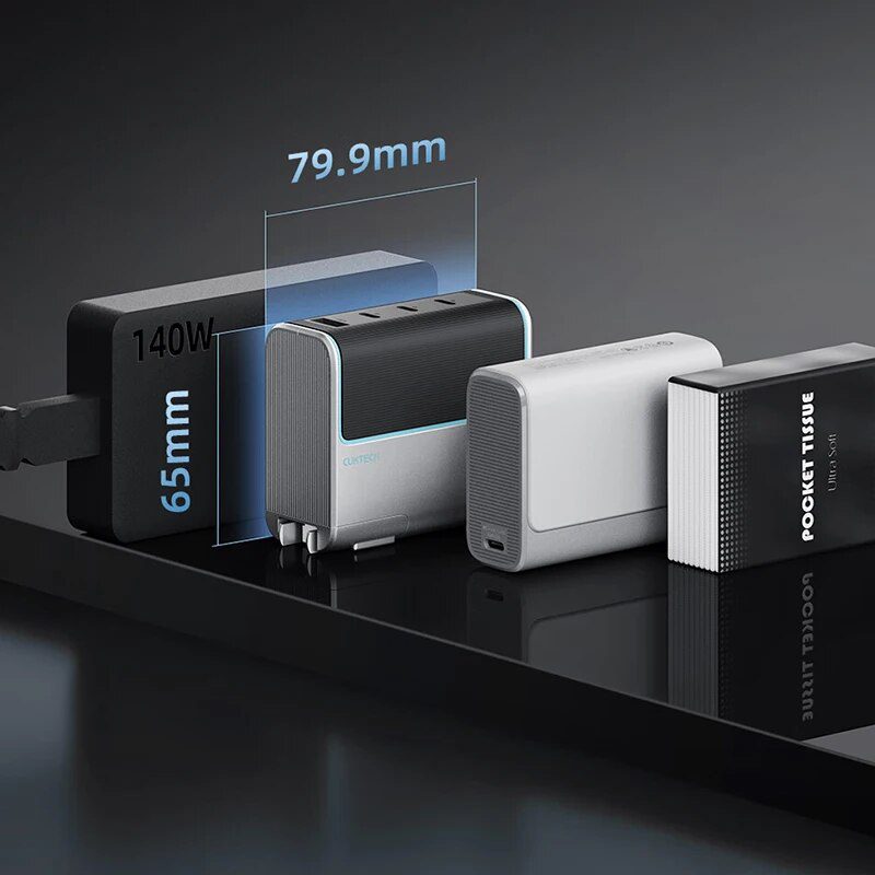 Mặc dù sở hữu công suất lên tới 140W, CUKTECH AD1404U lại có thiết kế nhỏ gọn hơn 20% so với sạc 140W của Apple, giúp dễ dàng bỏ túi hoặc mang theo trong balo, vali. Kích thước chỉ 79.9 × 65 × 32mm, bộ sạc vẫn đủ mạnh mẽ để thay thế nhiều loại adapter cồng kềnh khác, tối ưu không gian làm việc và hành lý của bạn.